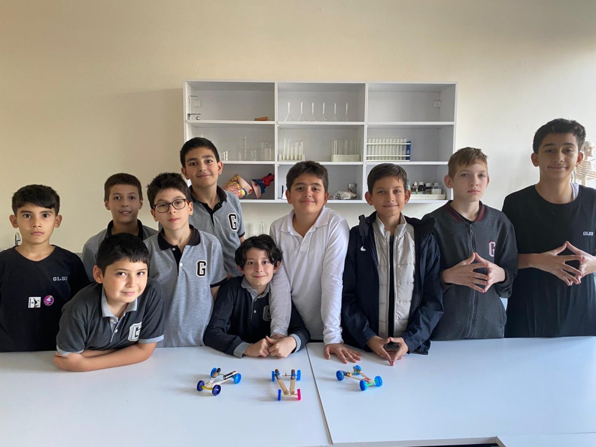 Öğrencilerimiz, STEM kulübümüzde öğretmenimiz Damla Gürcan’ın rehberliğinde geri dönüştürülebilir malzemelerden kendi arabalarını tasarladılar. Lastiklerin sağladığı enerji sayesinde arabalarımız hareket etti!