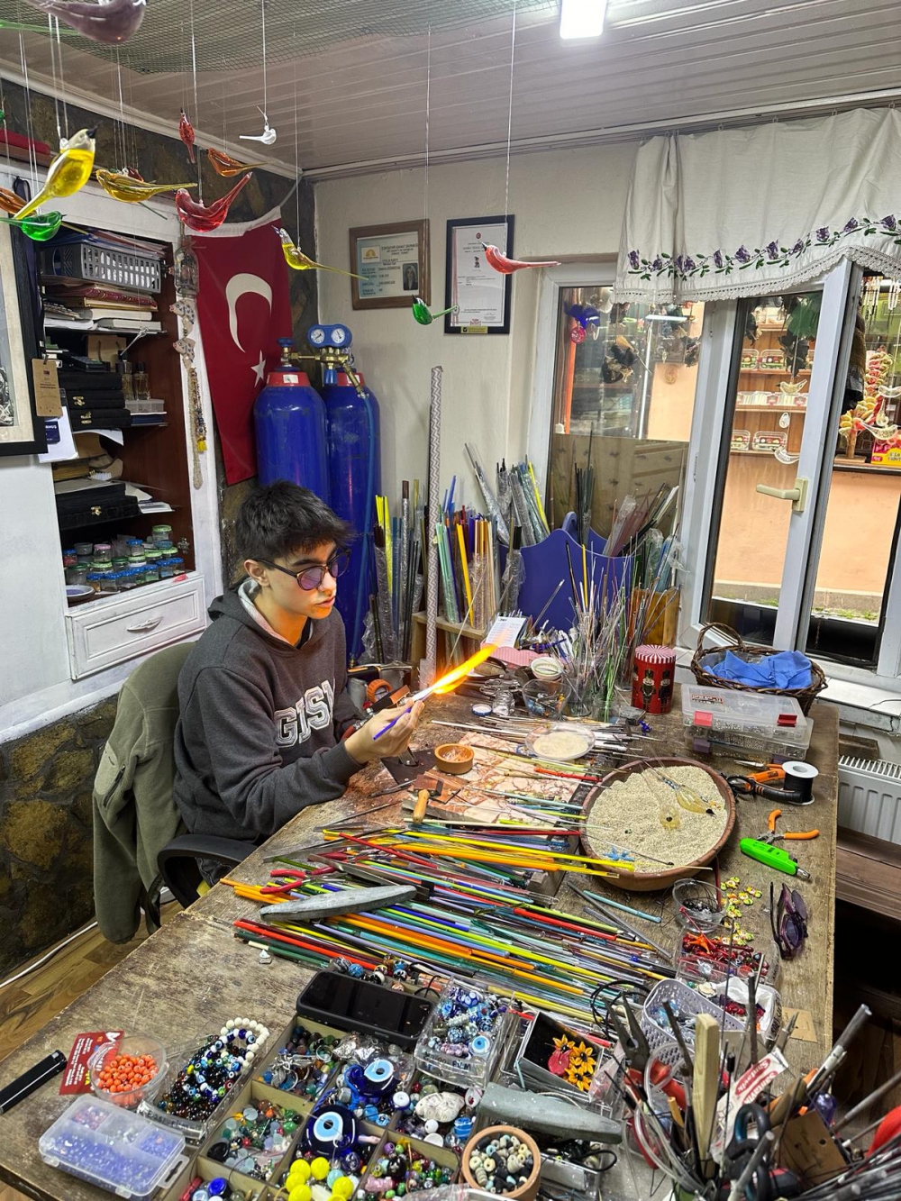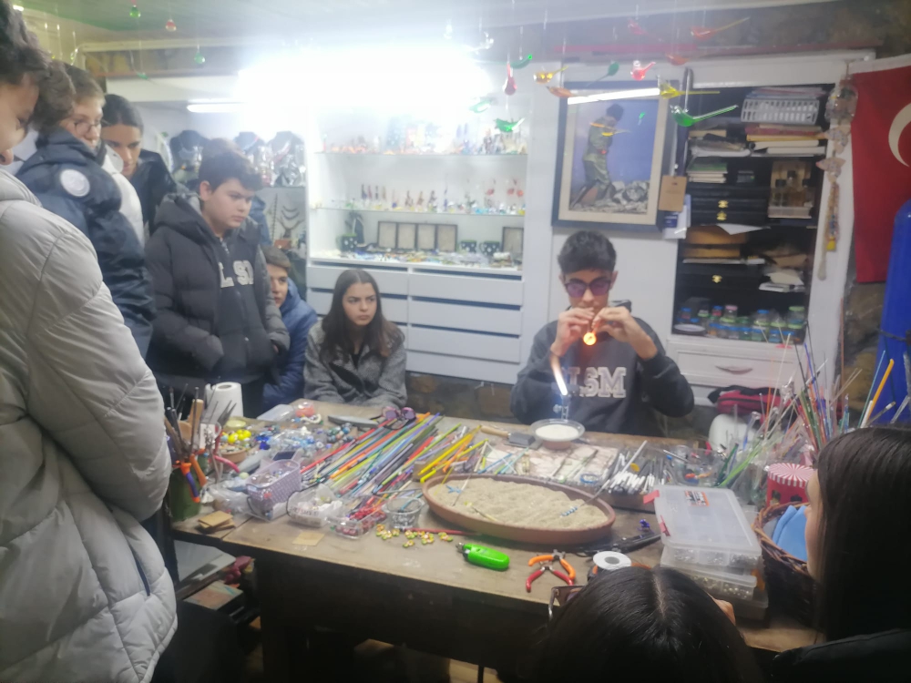 “Coğrafya Kulübü” öğrencileri, coğrafya öğretmenlerimiz eşliğinde şehrimizin önemli turizm merkezi Odunpazarı’na eğitim gezisi gerçekleştirdi. Gezide okulumuz velilerinden cam sanatçısı Yasemin Hanım’ın atölyesini ziyaret ettik. Öğrencimiz Egemen Dönertaş cam sanatının özelliklerini aktaracak birkaç çalışmasını kulüp öğrencilerimize gösterdi. Ardından şehrimiz için önemli olan Lüle taşı atölyesinde madenin nitelikleri ve kullanım alanları hakkında Erol Usta’dan bilgiler edindik.