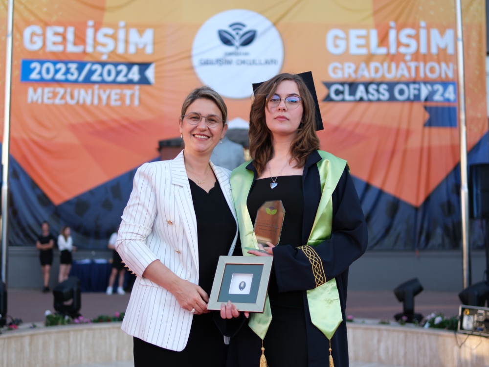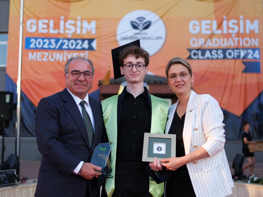 Gelişim Okulları Anadolu Lisesi Birincisi Defne Duru Dimitoka ve Gelişim Okulları Fen Lisesi Birincisi Kaan Berk Yücetürk’ün duygu dolu konuşmalarının ardından öğrencilerimiz şeref kütüğüne isim plaketlerini çaktılar.
