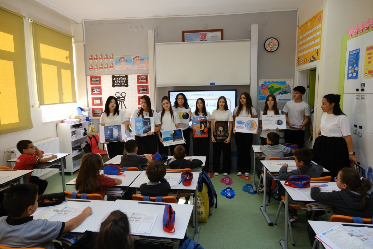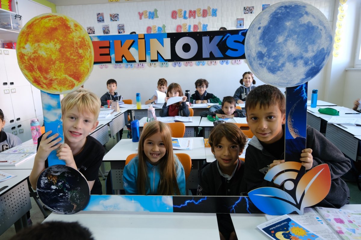 Gece ve gündüzün eşitlendiği bu özel günde; liseli öğrencilerimiz 2. Sınıflara doğa olaylarının hayatımızdaki yerini, ekinoksun ne anlama geldiğini ve dünyanın döngülerini basit ve eğlenceli bir şekilde aktardılar.