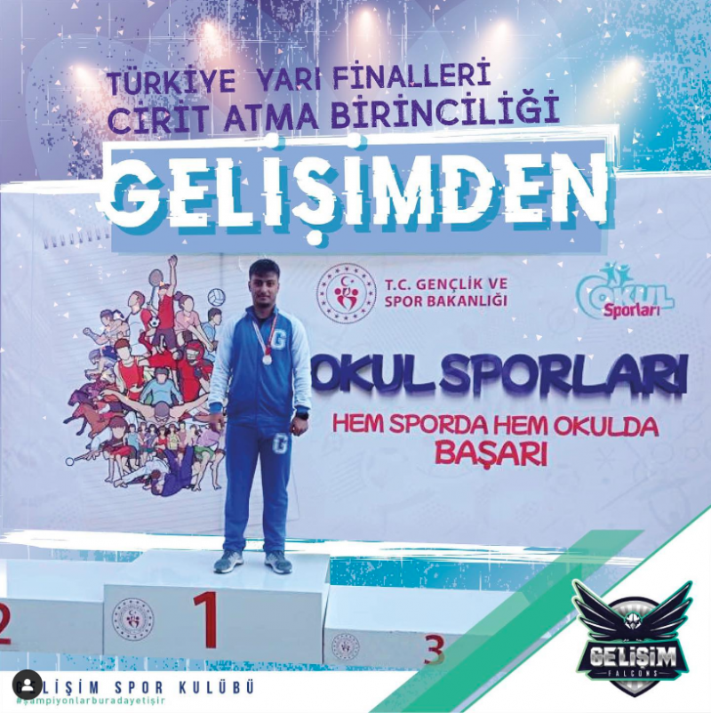 Zonguldak ilinde gerçekleştirilen liseler arası “Türkiye Yarı Finalleri Atletizm Yarışması Cirit Atma” branşında yarışan öğrencimiz Hüseyin Berkay İmdat, Türkiye birincisi olmuştur. Sporcumuzu ve antrenörümüz Gürbüz Çam’ı tebrik eder, 3-4 Mayıs 2023 tarihlerinde İzmir’de düzenlenecek olan Türkiye Şampiyonası’nda başarılar dileriz.