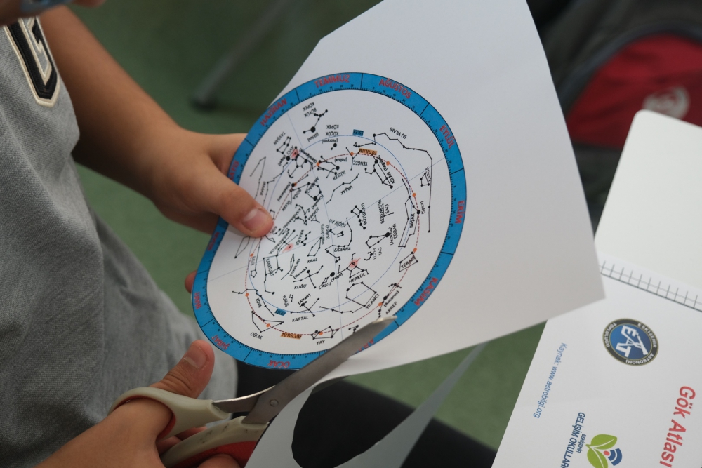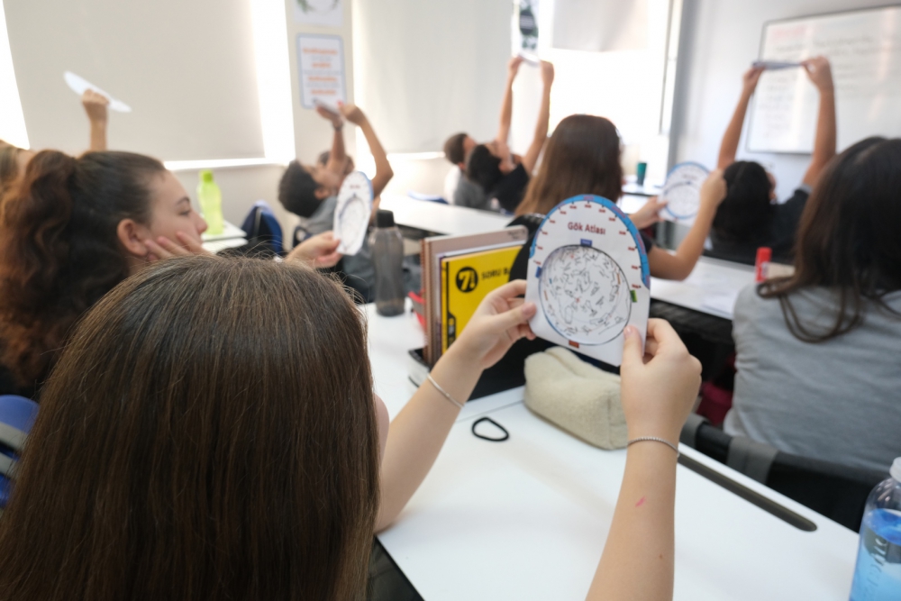 Okulumuz 7. sınıf öğrencileri Fen Bilimleri dersinde “Uzay Araştırmaları” ünitesi kapsamında kendi gökyüzü atlaslarını yaptılar. Fen Bilimleri Öğretmeni Ahmet Bozdoğan tarafından, belirlenen bir tarihte ve saatte takım yıldızlarının nerede ve nasıl görülebileceği eğitimini aldılar. Hem yaparak hem de eğlenerek derslerine ait önemli bilgileri öğrendiler.