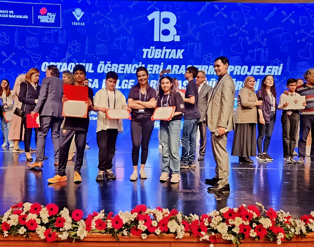 TÜBİTAK 2204 B Araştırma Projeleri Bölge Finali yarışmasında okulumuz ortaokul öğrencilerinden Sarp Tekin AY, Doğa TAŞDEMİR ve Mehmet Can ÖZDEMİR Biyoloji Alanındaki projeleri ile ÜÇÜNCÜ olmuştur. Danışman öğretmenleri Sanem AY ve öğrencilerimizi bu güzel başarılarından dolayı kutluyoruz.