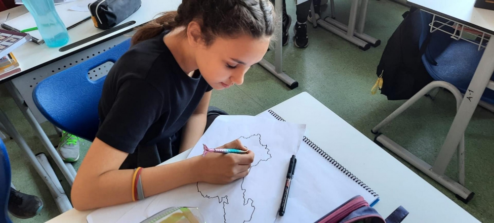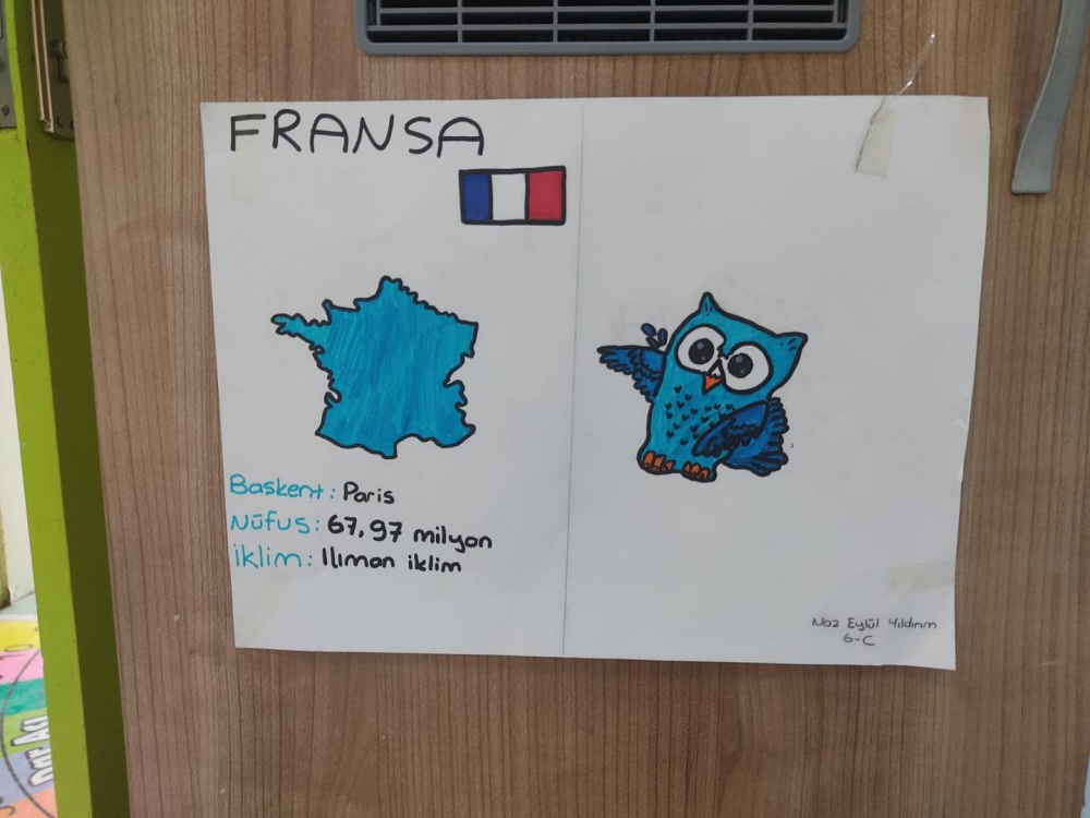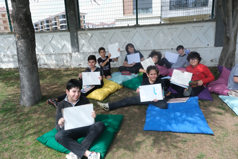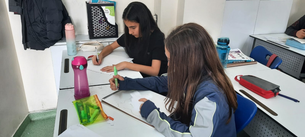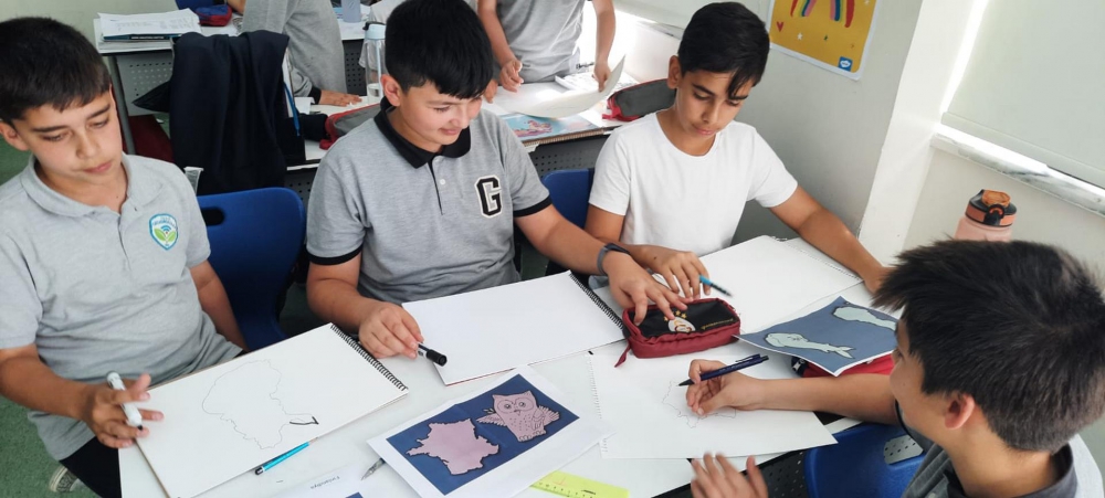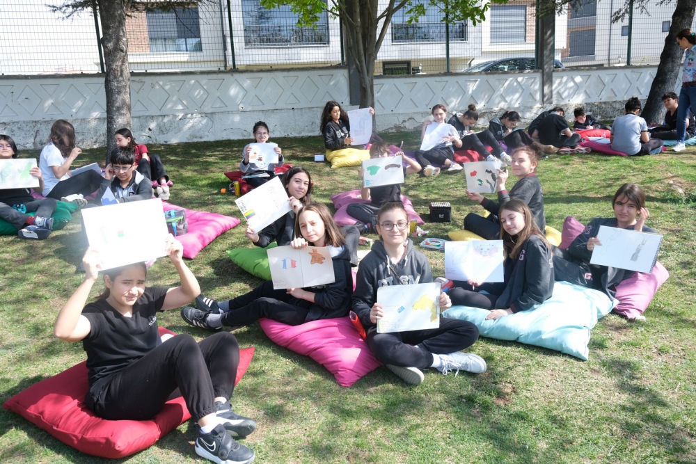 6. sınıf öğrencilerimiz Sosyal Bilgiler dersinde ülkeler ve kıtaları hayal gücünü kullanarak tasarladılar. Ders öğretmenlerimiz eşliğinde sınıfta başlayan etkinliğimiz bahçede tamamlandı. Eğlenceli çizimlerin ortaya çıktığı etkinliğimiz ile hayal gücünü geliştiren öğrencilerimiz ülkeler hakkında da bilgi sahibi oldular.