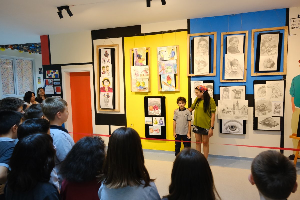 Öğrencilerimizin eserleri, okulumuz ortaokul sergi alanında bir hafta boyunca sanatseverleri beklemektedir. Öğrencilerimizi ve öğretmenimizi tebrik ederiz.